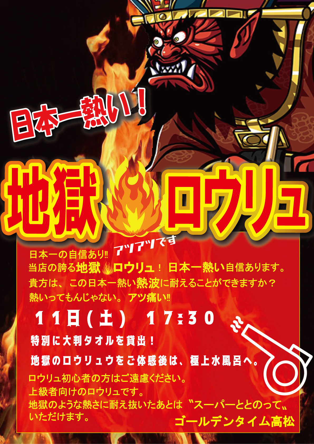 地獄ロウリュ開催!4月11日17時30分~